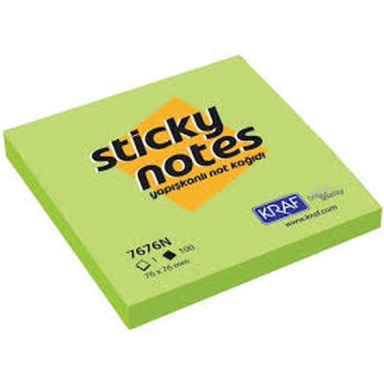 Kraf Yapışkanlı Not Kağıdı 76x76 mm 100 yp Neon Yeşil