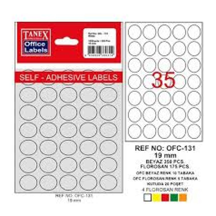 Tanex Ofis Etiketi Poşetli Yuvarlak 19 MM Beyaz OFC-131